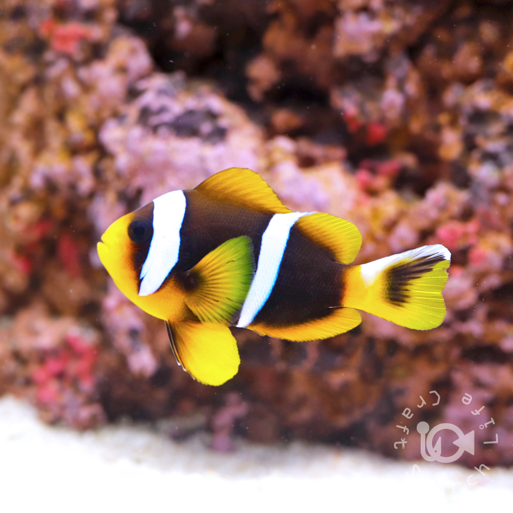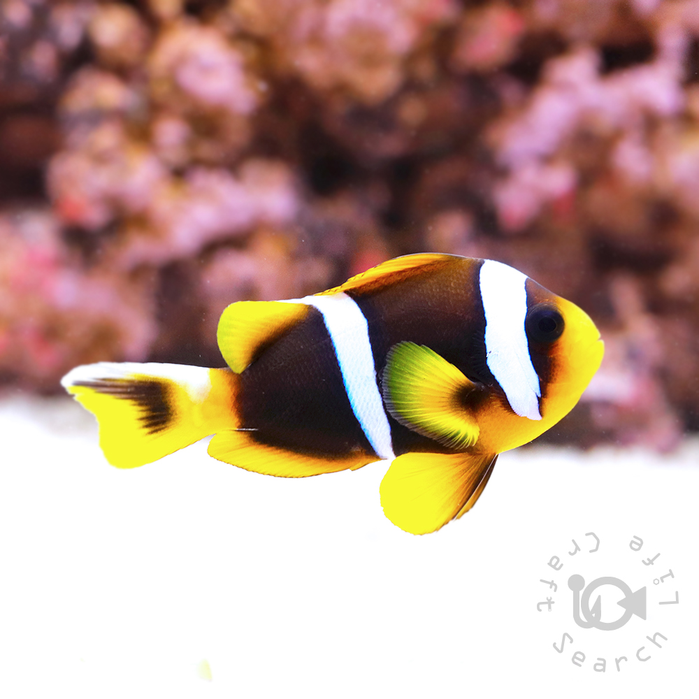 | アラルズクラウンアネモネフィッシュは東アフリカから南アフリカまで広がる西部インド洋のサンゴ礁やラグーン域に生息するクマノミの仲間です。 幼魚では黒褐色の体に2本の白いバンドがあり、尾ビレの上部に入る白いワンポイントが美しい人気種。 性格は比較的温和で、水槽内でもイソギンチャクと共生する可愛い姿を観察できます。 雑食性で野生下では小さな動物プランクトンや藻類、イソギンチャクの食べ残しなどを食べ、飼育下でも人工飼料をよく食べるため初心者にもおすすめの1匹です。 集団の中で一番大きな個体はメスになる習性があるため、ペアを作る際にはサイズ差のある個体を2匹以上で飼育することが重要。 共生するイソギンチャク△ハタゴイソギンチャク |