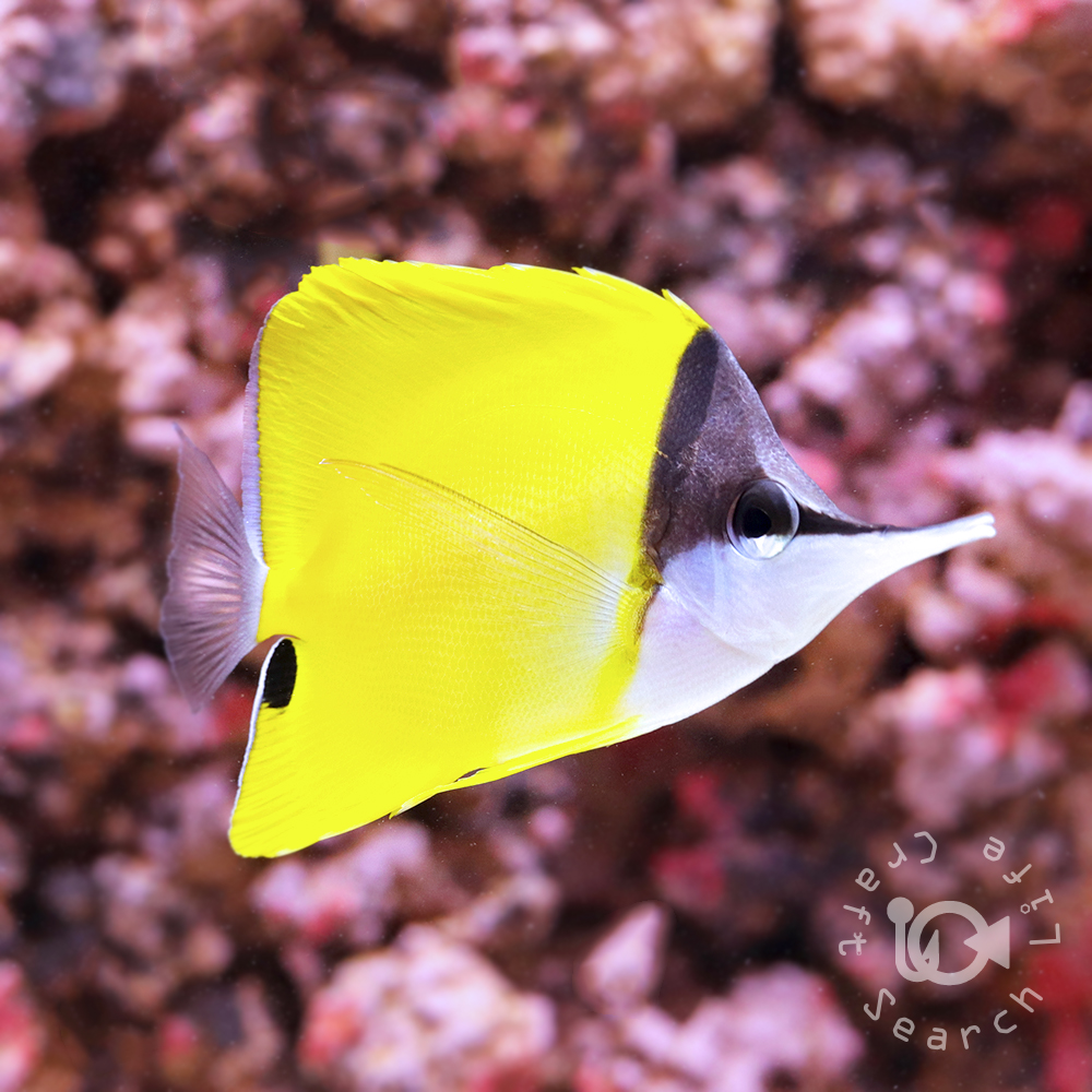 | 主にインド洋から太平洋にかけて広く分布しているチョウチョウウオで、この仲間はサンゴのポリプを食べるためサンゴ水槽での飼育には不向き。 鮮やかな黄色の体色と長く伸びた口が特徴的な定番種です。 飼育自体は容易で初めから人工エサを食べる個体も多く、餌付いていない場合でも冷凍のブラインシュリンプやホワイトシュリンプを与えれば徐々に粒エサを食べ始めます。 |